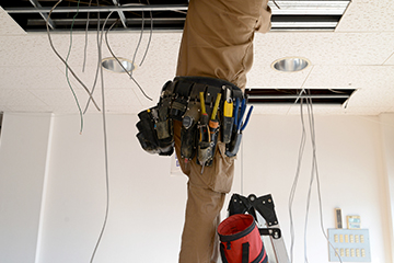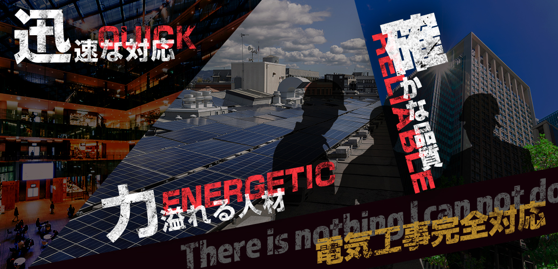 当社は配線や照明、空調工事の他、高圧受電設備工事や計装工事、産業用太陽光発電など、幅広い電気工事に対応しています。若い社員が多数在籍しているため、ご依頼があれば全国どこでもお伺いいたします。